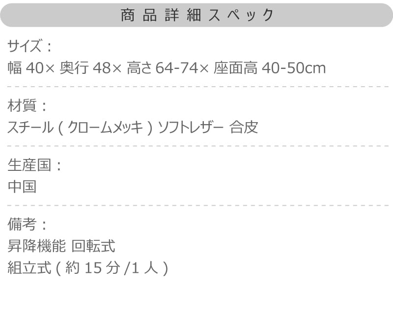 材 質|スチール(クロームメッキ)、ソフトレザー、合皮