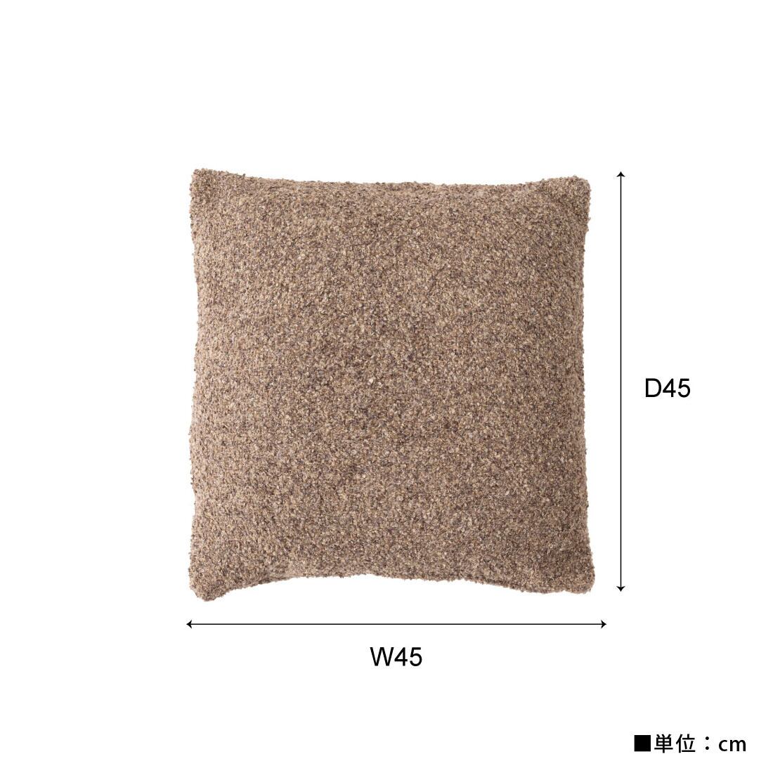 クッション ブラウン 茶色 正方形 おしゃれ ソファ ブークレ生地 くすみカラー スクエア 無地