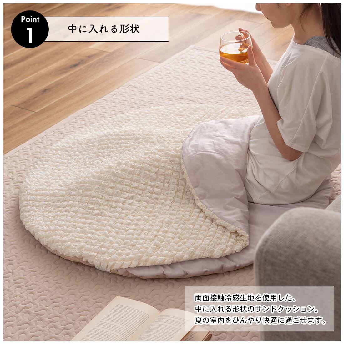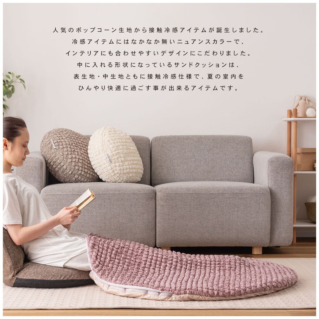 ●人気のポップコーン生地を使った接触冷感のラウンドサンドクッション。