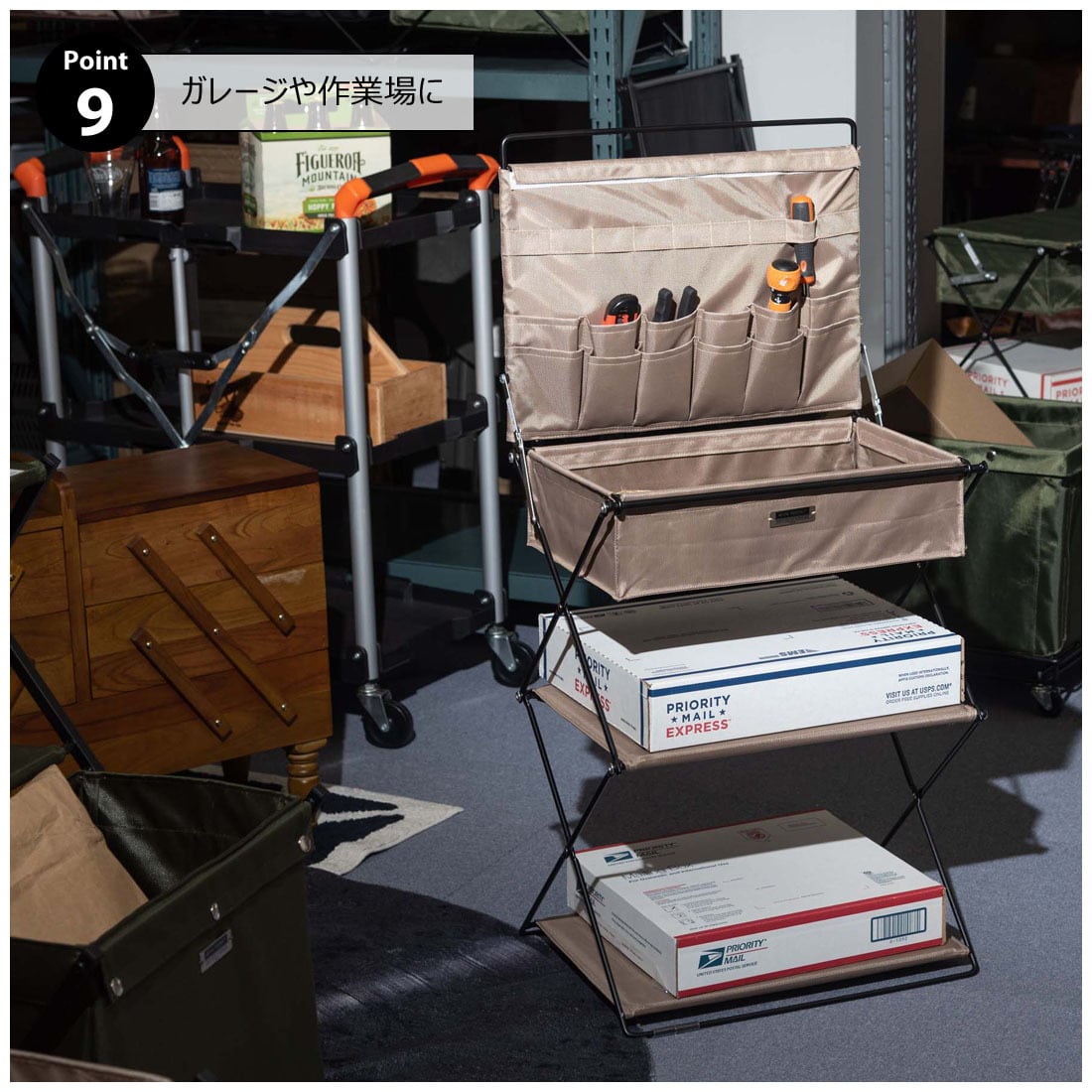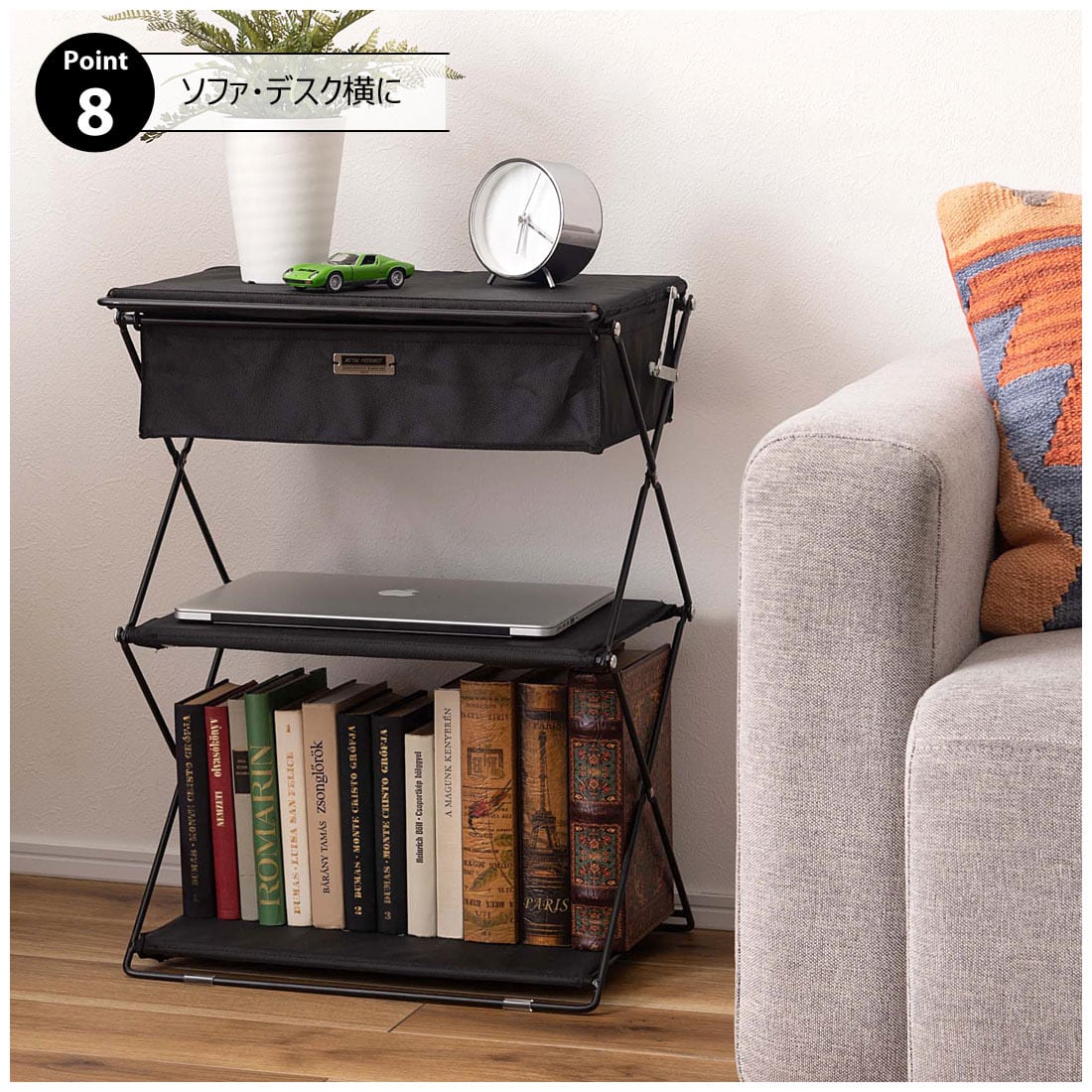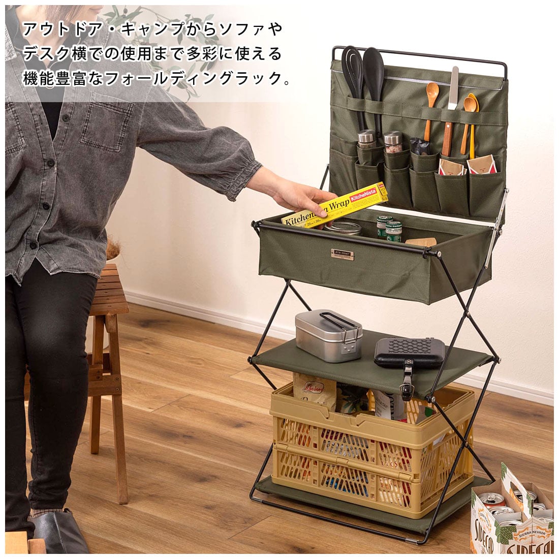 ●アウトドア・キャンプからソファやデスク横での使用まで、多彩に使える機能豊富なフォールディングラック。