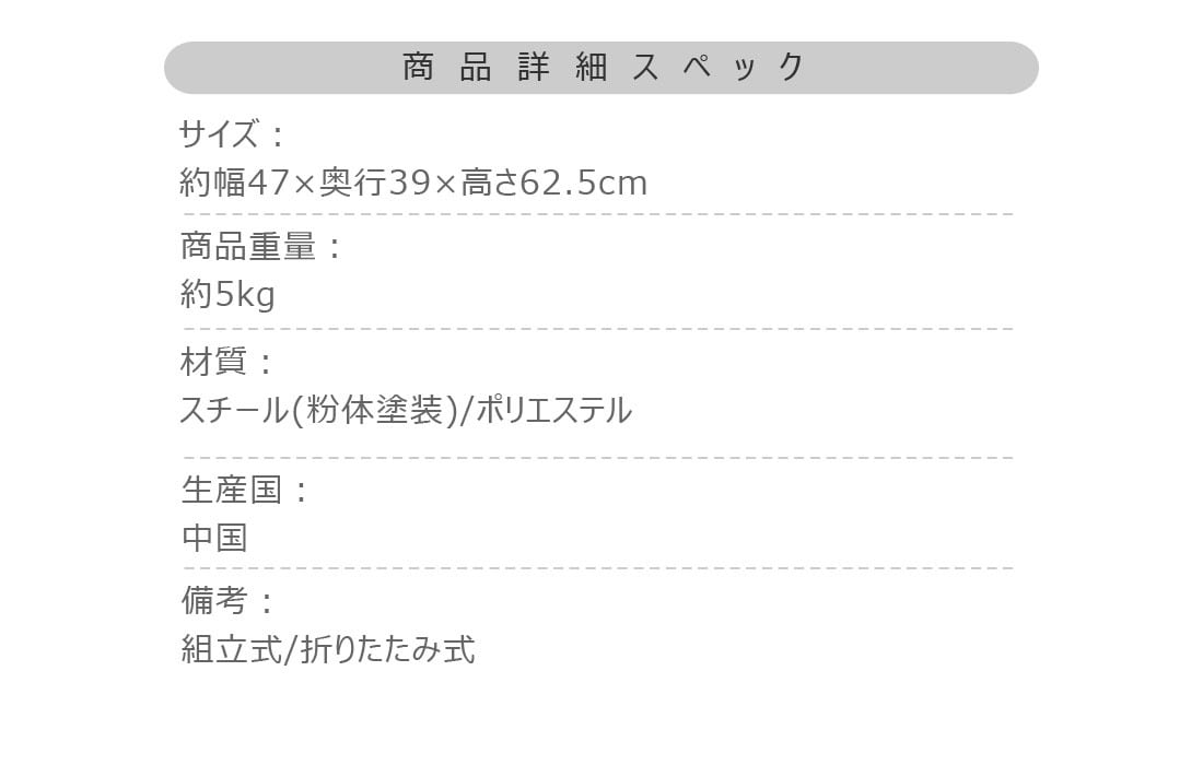備 考|組立式、折りたたみ式、静的耐荷重:5kg/棚