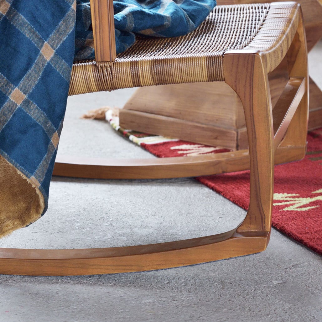高級木材である【チーク材】を使用した、ヴィンテージ感漂うゆらゆらと心地よく揺れるロッキングチェアです。奥行きの広い座面でゆったりとリラックスできます。耐久性が高く、蒸れにくく長時間座っても快適です。