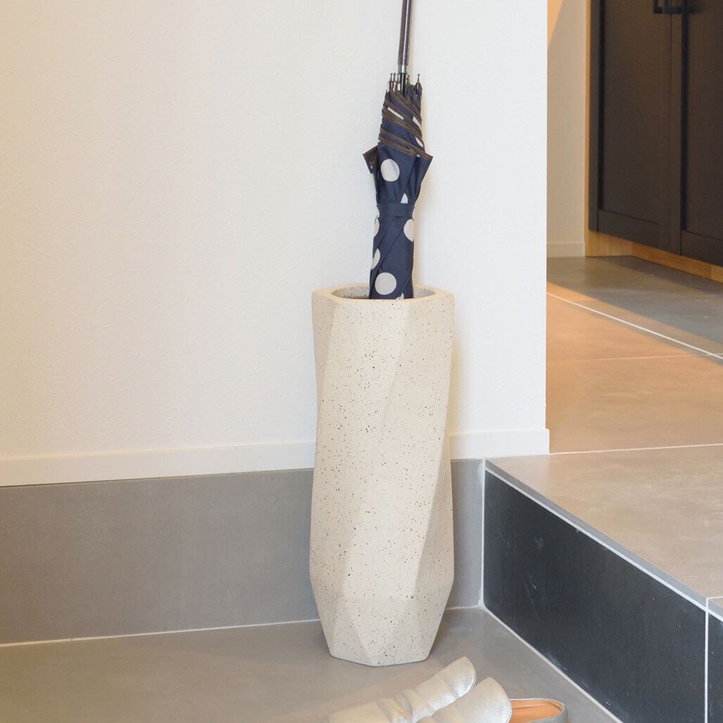 やわらかい色合いとしなやかなシルエットが特徴的な陶器を使用した傘立てです。3.4kgと、どっしりとした重量感があるので、傘を立てても安定して自立します。玄関先に丁度良いコンパクトサイズ。