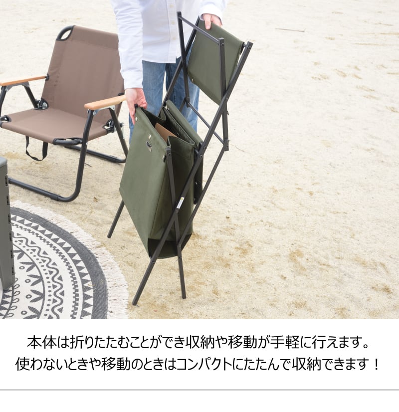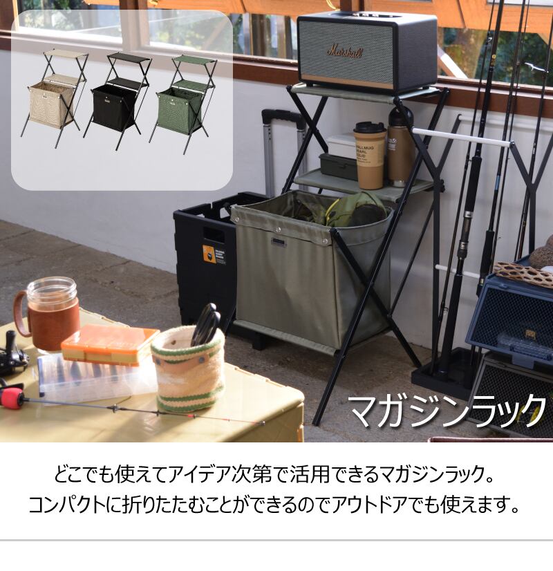 ■どこでも使えてアイデア次第で活用できるマガジンラック。コンパクトに折りたたむことができるのでアウトドアにも使えます。