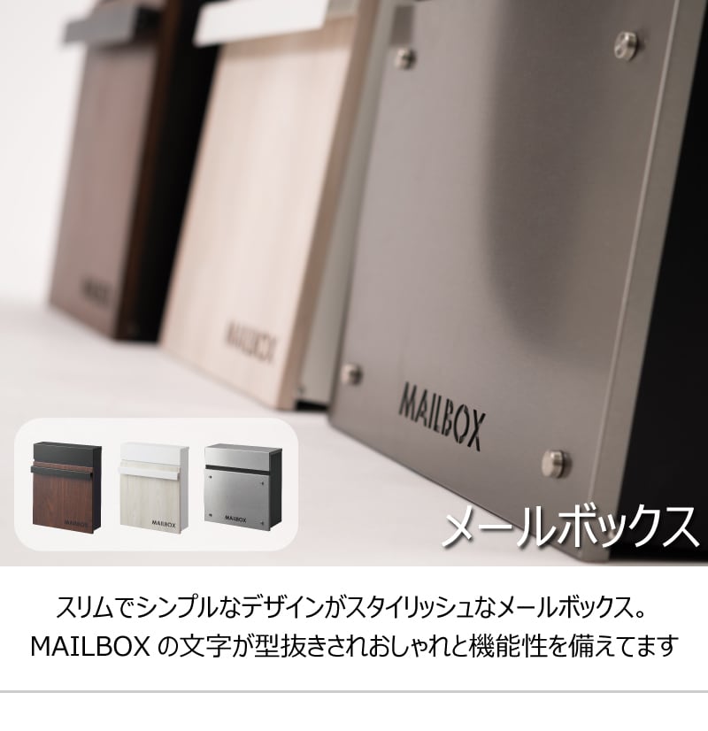■スリムでシンプルなデザインがスタイリッシュなメールボックス。MAILBOXの文字が型抜きされおしゃれと機能性を備えてます
