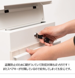 ■盗難防止のために鍵がついていて防犯対策もばっちりです!またスペアキーが付属しているので紛失してしまっても安心です。